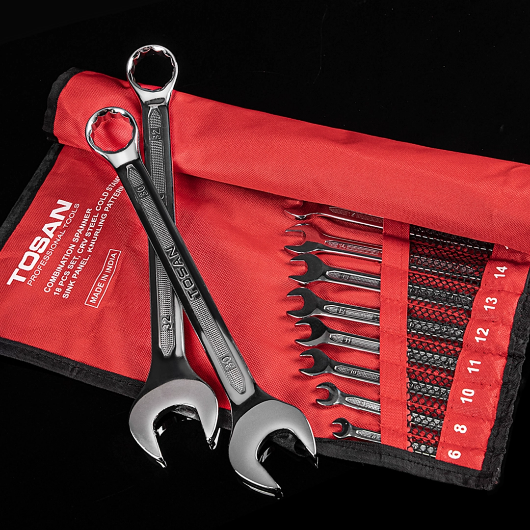 مجموعه 18 عددی آچار یک سر تخت یک سر رینگی توسن مدل TI-101-S18